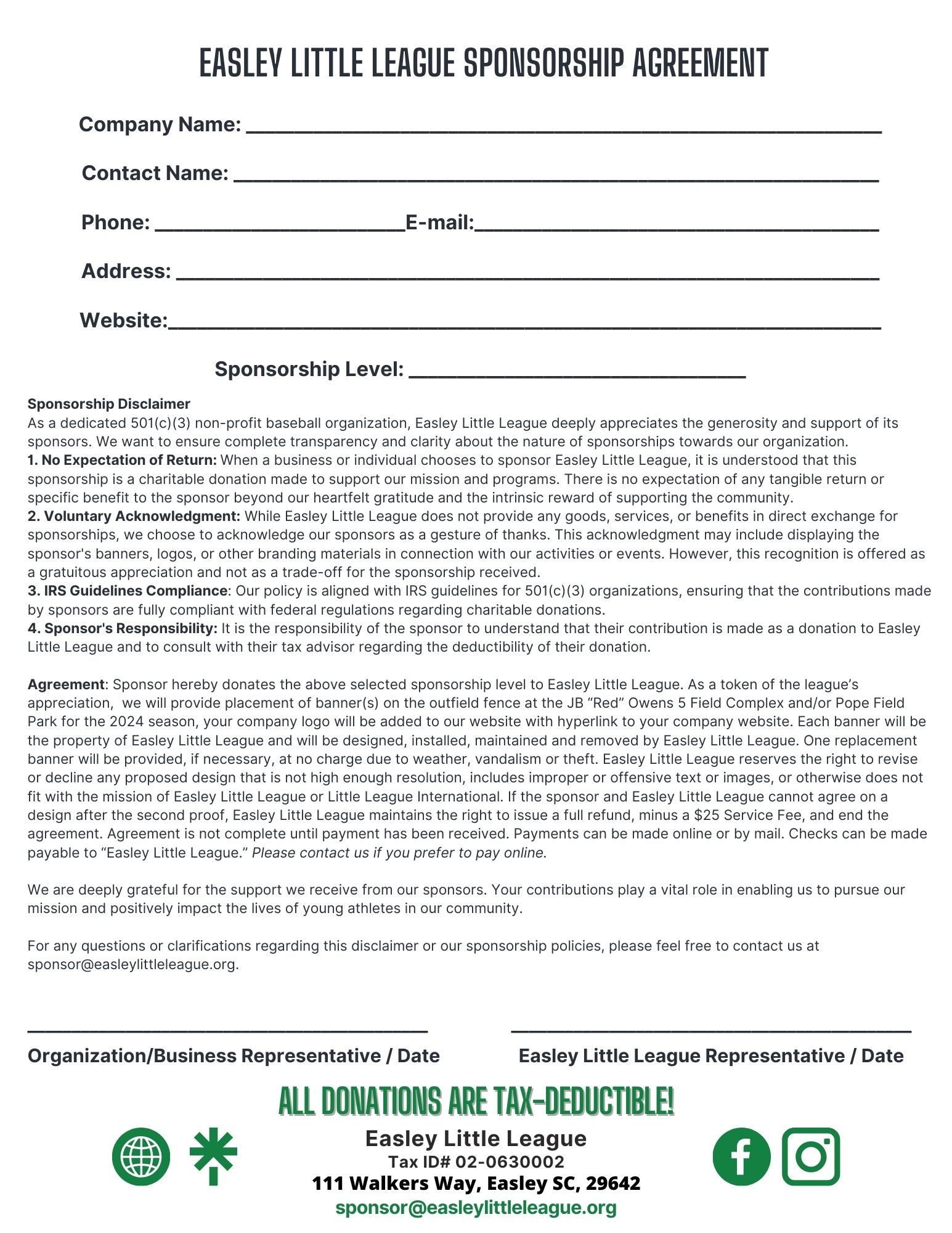 Easley Little League Constitution
