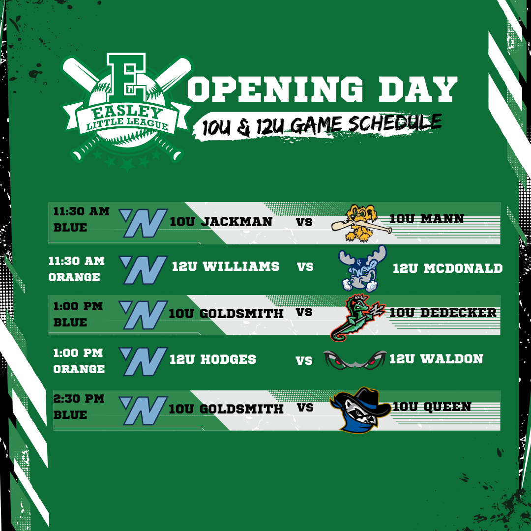 Opening Day - 10U & 12U Game Schedule