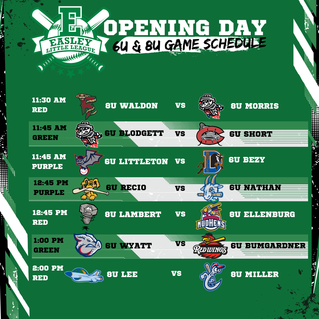 Opening Day - 6U & 8U Game Schedule
